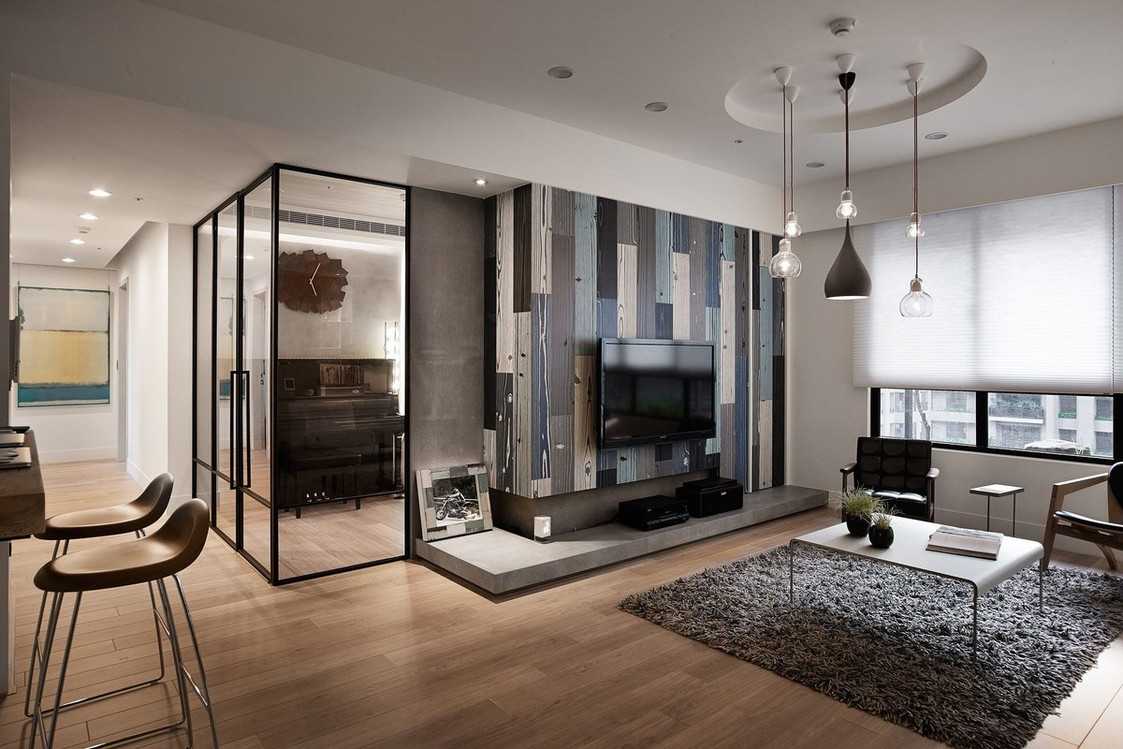 Именно поэтому для зонирования можно использовать предметы мебели, легкие ширмы, барные стойки, стеклянные перегородки и т.д. Отделить гостиную можно даже ковриком, освещением или подиумом.