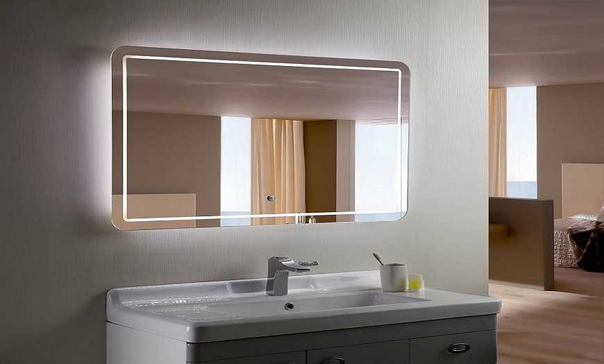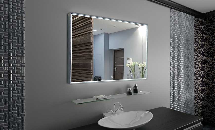 Большая зеркальная поверхность — тренд в современных санузлах. В комнате можно разместить прямоугольное, квадратное или закругленное изделие.