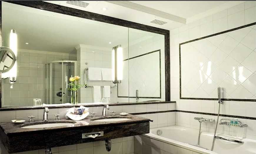 Если дизайн стен и пола с монохромной плиткой слишком однообразен, вы можете привнести в свою ванную комнату немного роскоши. Акценты с блестящими мозаичными вариантами или с элементами сусального золота — настоящие шедевры. Отражением света позволяет дополнительно озарить пространство. Мерцающие мозаичные плитки придают ванной комнате утонченный облик.