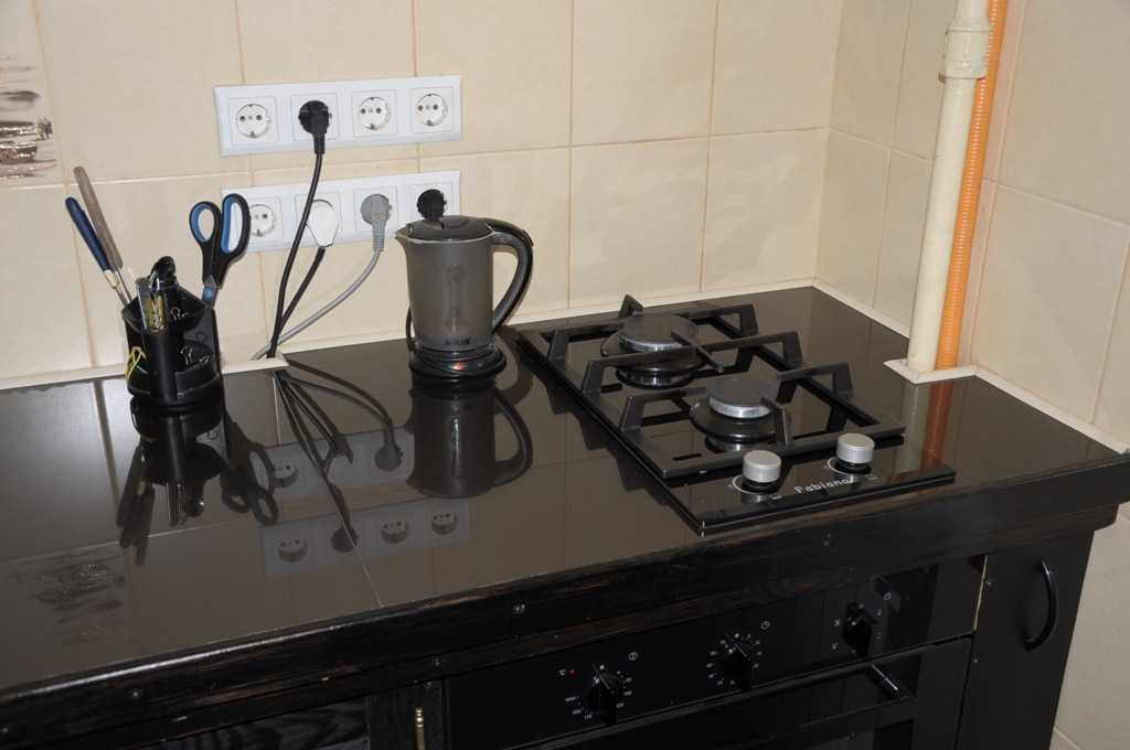 Рабочую поверхность рекомендуется располагать между плитой и мойкой, ее длина не должна быть меньше 40 см, и не должна превышать 80 см. На очень маленькой кухне стоит использовать небольшую варочную поверхность с двумя-тремя конфорками, отказавшись от полноценной плиты.
