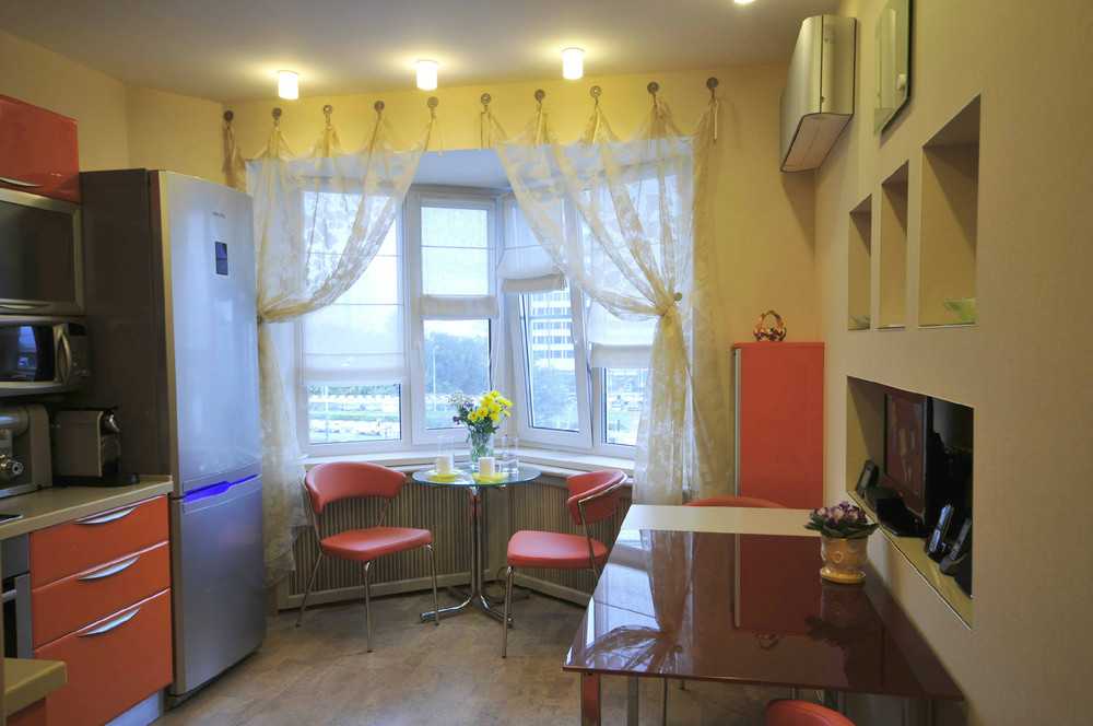 Мы можем вам дать следующие советы по выбору занавесок для небольшой кухни: