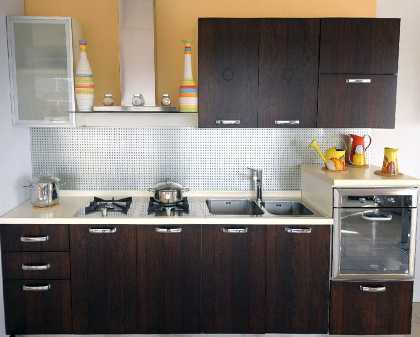 - Это будет более функционально, если вы выберете однокамерную раковину, двухкомфорную плиту и вытяжку под шкафом.