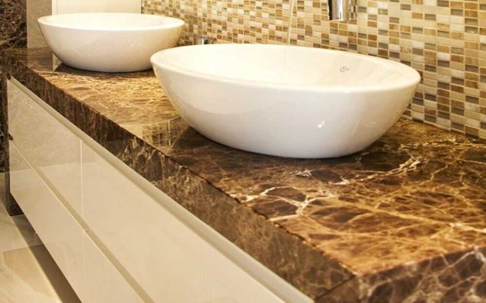 Обустройство каменных столешниц для ванных комнат: гранит, мрамор, песчаник, травертин и конгломерат