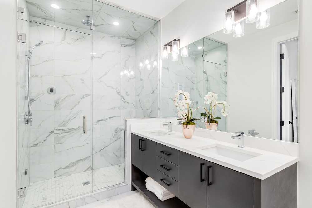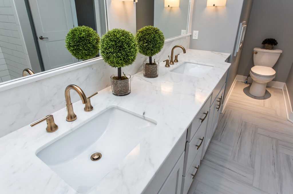 Глянцевая мраморная отделка — идеальный выбор, если вы хотите, чтобы ваша ванная комната выглядела элегантно и дорого. Его зеркальная поверхность отражает свет в ванне. Вы можете сохранить сияющий и роскошный вид ваших мраморных столешниц при правильном уходе/ Между тем, шлифованный мрамор подходит для ванных комнат, так как предотвращает скольжение. Если у вас маленькая ванная комната, подумайте об использовании большой мраморной плитки или плит, чтобы пространство выглядело больше, чем оно есть на самом деле.