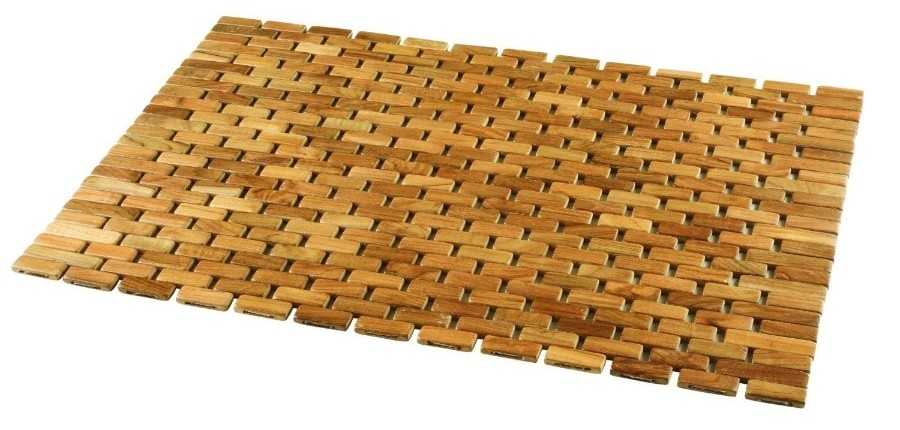 Неплохим вариантом являются деревянные коврики. Они отлично впитывают влагу и быстро высыхают, их легко мыть. Коврики из дерева довольно тяжелые, благодаря чему не скользят.
