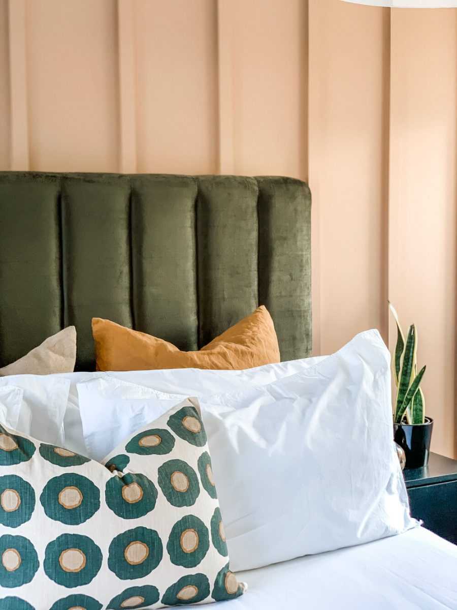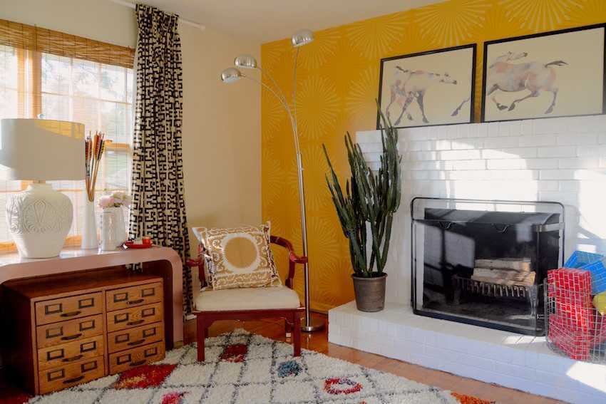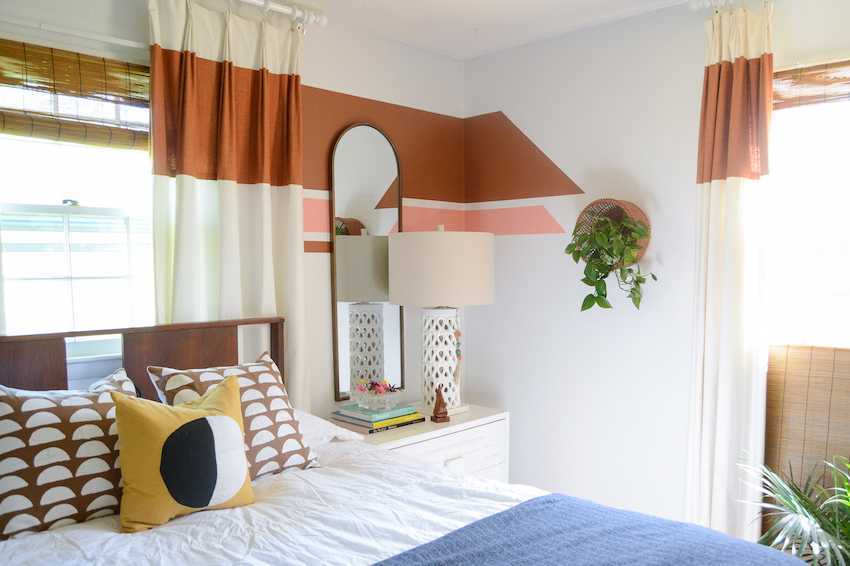 - Применение сложных интересных цветов в текстиле и для отделки акцентной стены;