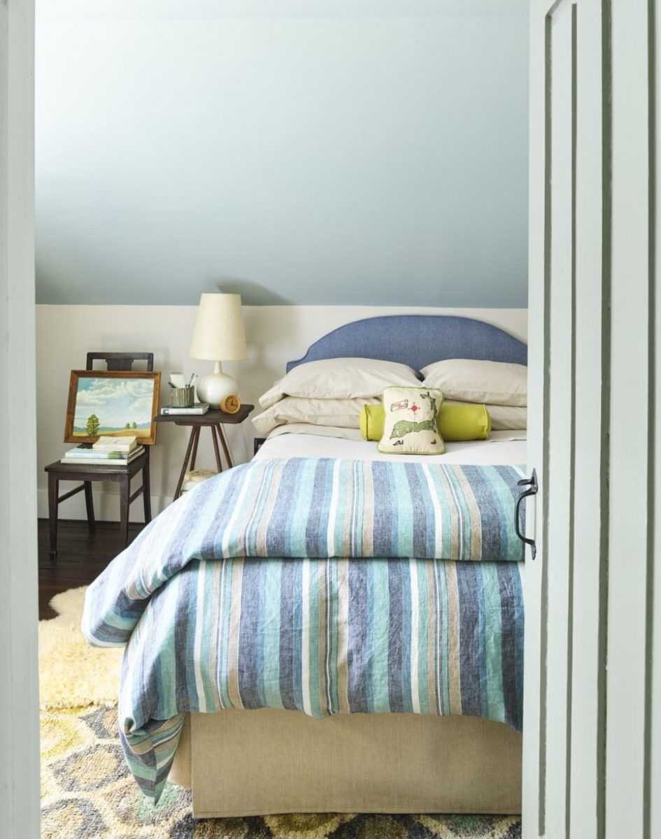 - Использование светлых пастельных цветов для стен и белых оттенков – для потолка;