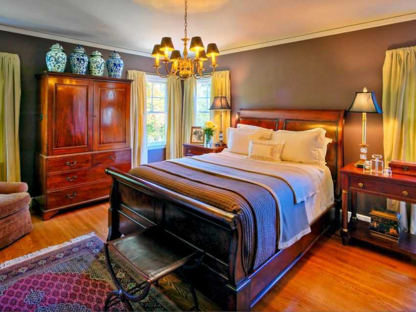 Учитывая пространство небольшого помещения, выбирать громоздкую крупногабаритную мебель не рекомендуется. Она визуально «съест» все свободное пространство, а спальня лишится атмосферы уюта.