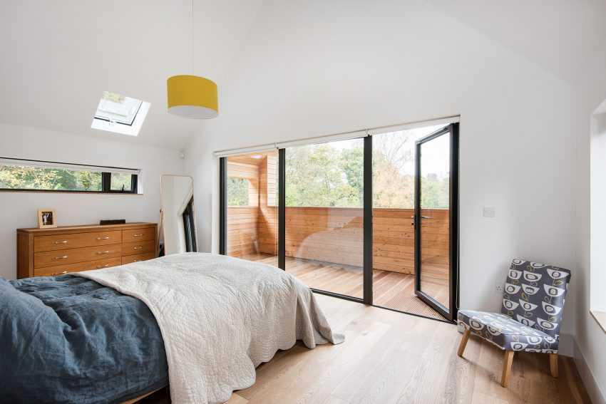 Прямоугольная спальня с балконом – это находка для дизайнера. Дополнительные квадратные метры открывают множество возможностей. Можно убрать разделяющую ограждающую конструкцию и расширить комнату за счёт присоединения к ней площади лоджии. У подобного решения есть один минус – оно требует согласования с различными инстанциями.