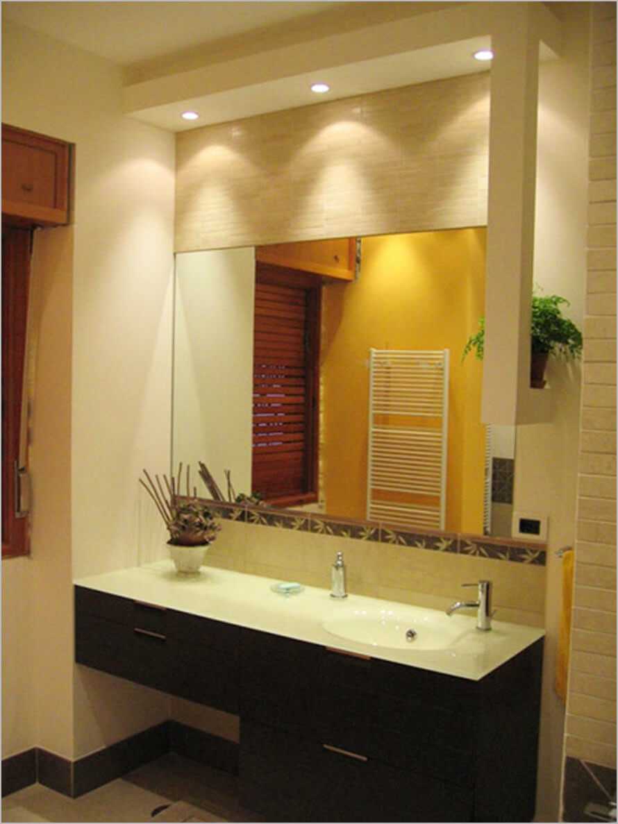 Кроме бра можно воспользоваться точечными светильниками. Для зеркала хватит двух спотов диаметром выше 5 см или 3-4 ламп помельче.