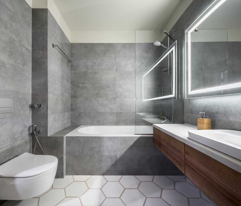 Основной источник света должен иметь достаточную мощность и цвет для обеспечения безопасности и комфорта. Он также должен гармонично сочетаться с другими точками освещения, а также со всеми остальными элементами ванной комнаты.