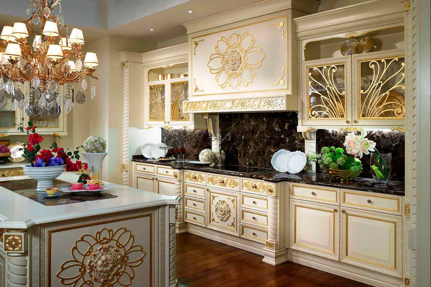 Любителям английского стиля, в котором подчеркиваются элегантность и благородность, рекомендуется применение дорогих отделочных материалов в виде малахита, мрамора или перламутра. Именно благодаря их грамотному сочетанию, с остальными элементами кухни, достигается максимальная гармония и уют.