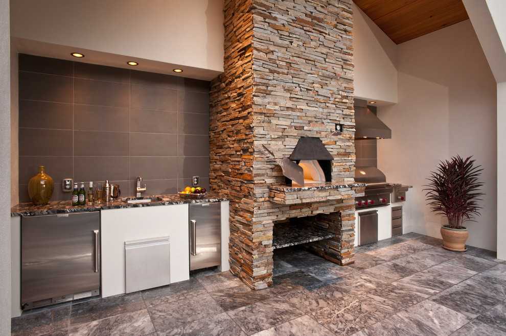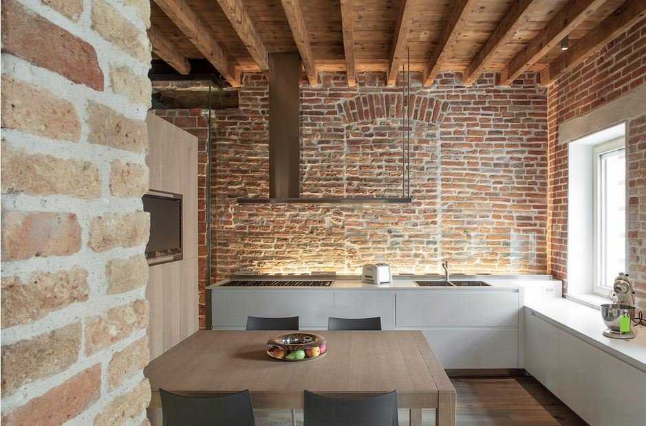 Хай-тек, минимализм и лофт находят свое отражение в фартуках из яркого декоративного камня, глянцевых каменных акриловых столешницах и дизайнерских акцентах из искусственного камня в любой из кухонных зон. Идеальным вариантом станет кирпичная кладка.