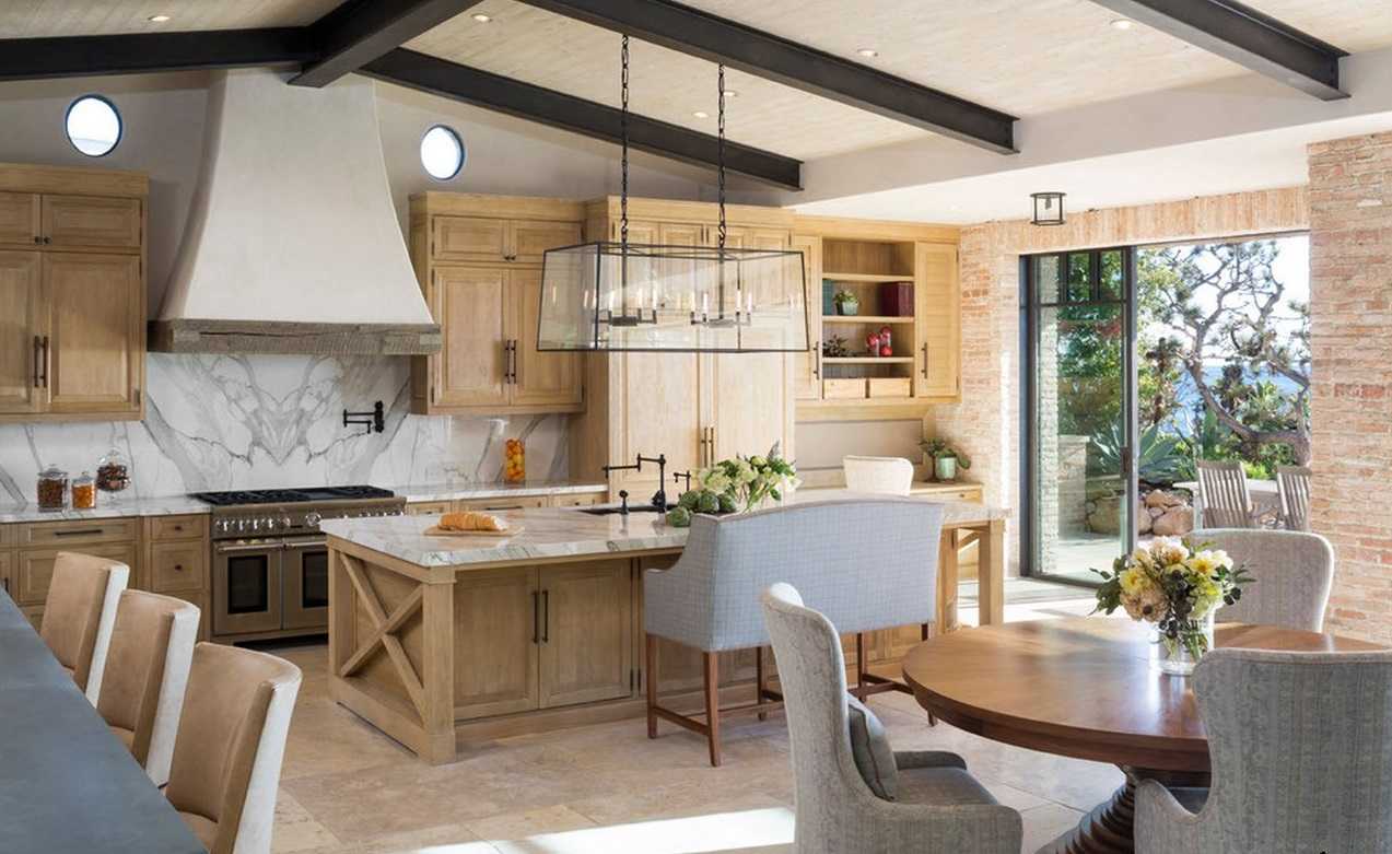 Уютная кухня с деревянными панелями Просторная кухня в винтажном стиле