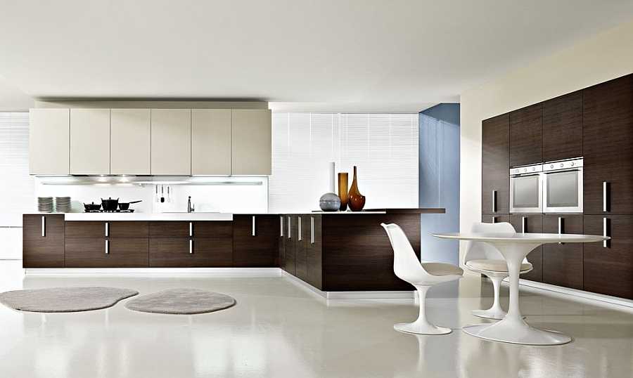 Великолепное сочетание белого и коричневого в современном интерьере кухни
