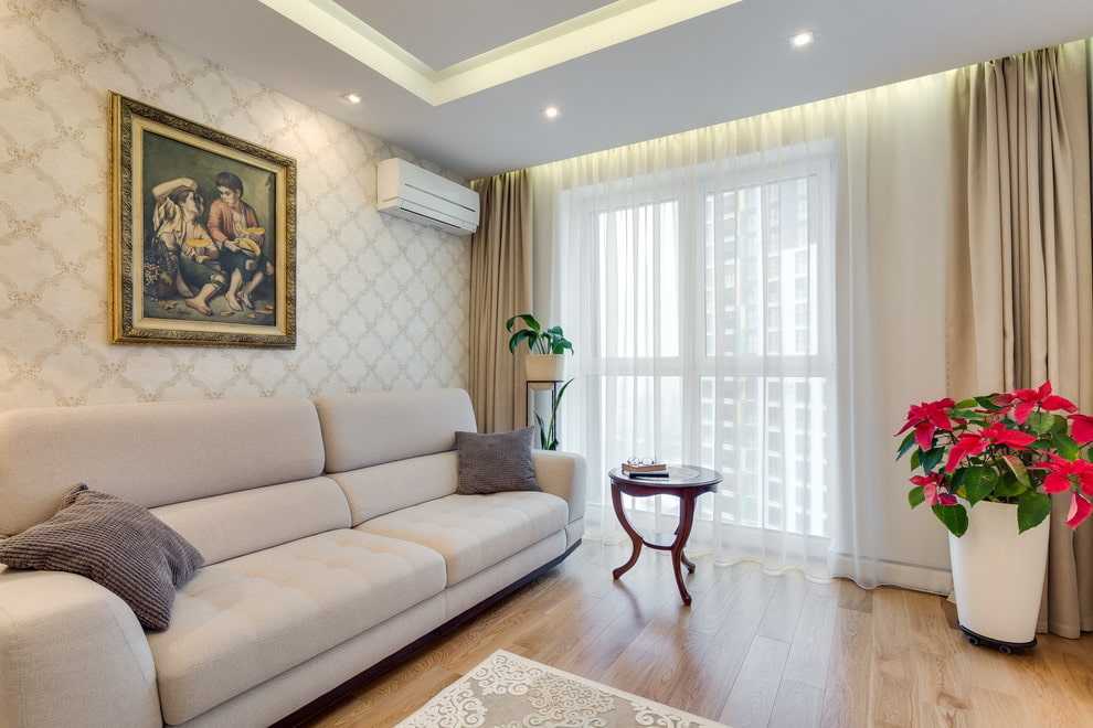 Бежевый интерьер гостиной считается классикой. В таком тоне можно оформить как просторный, так и небольшой по площади зал.
