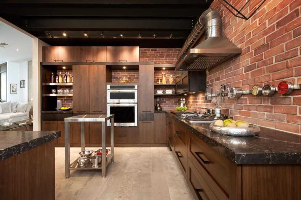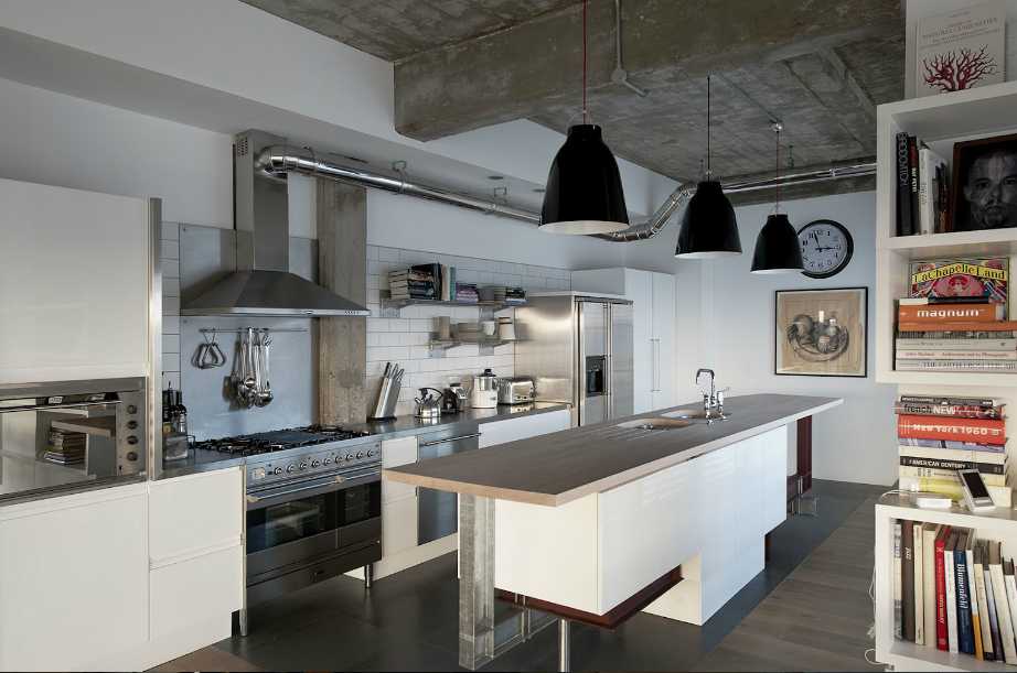 Отделка кухни в стиле лофт подходит для больших и маленьких кухонь.