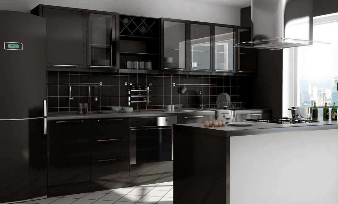 Почти все предметы кухни смотрятся блистательно в черном, но больше всех выделяется в таком дизайне столешница, которая служит одним из главных действующих элементов в помещении. Часто она располагается особняком – на острове или просто занимая большую площадь. Благородный черный гранит будет смотреться изысканно в любом стиле.