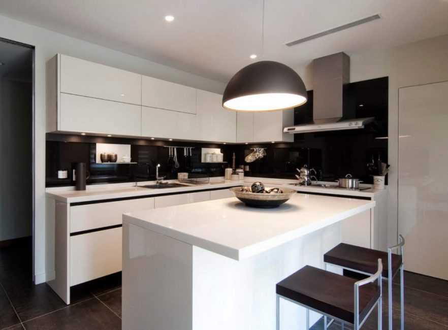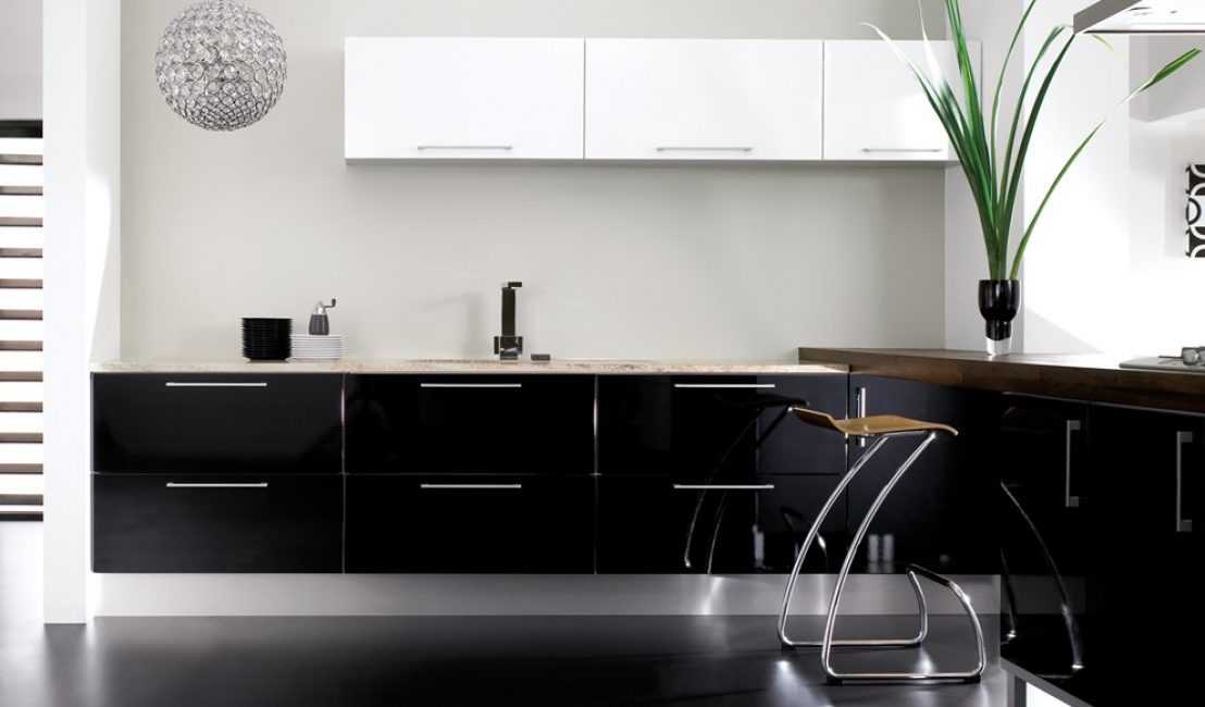 Самым удобным дополнением черного для кухонь дизайнеры называют черно-белую схему