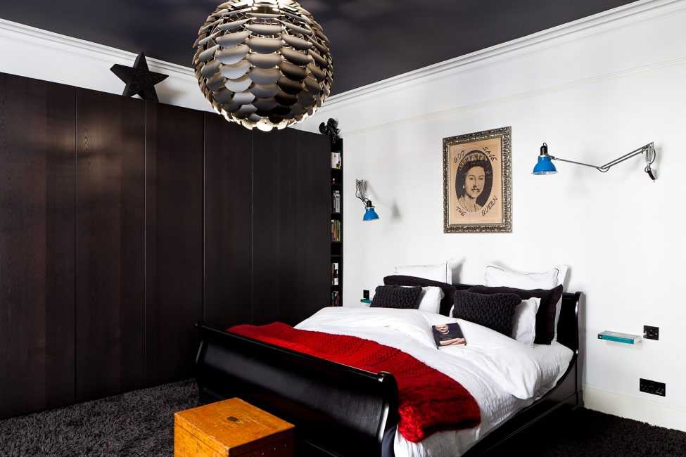 Угольная краска на потолке, обоях могут подчеркнуть небольшую площадь вокруг: