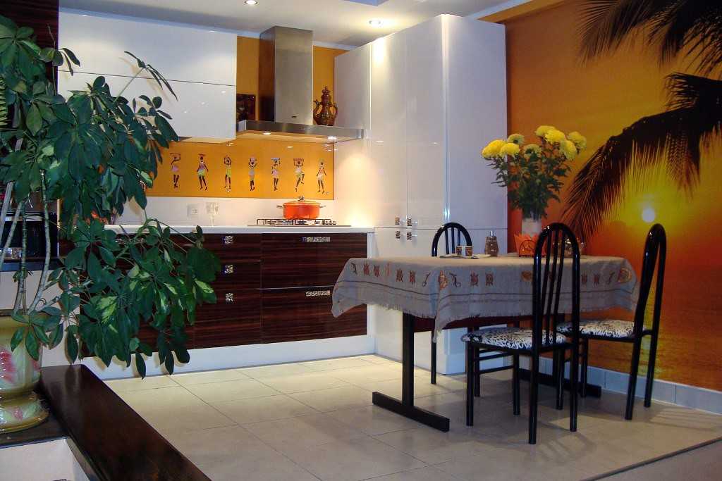 Интерьерные наклейки стоит использовать для украшения современных кухонь. Панно из мозаики, тарелки с росписью, самодельные картины, выполненные из кофейных зерен, круп, макаронных изделий, окрашенных разноцветными красками, отлично будут смотреться в любом интерьере.