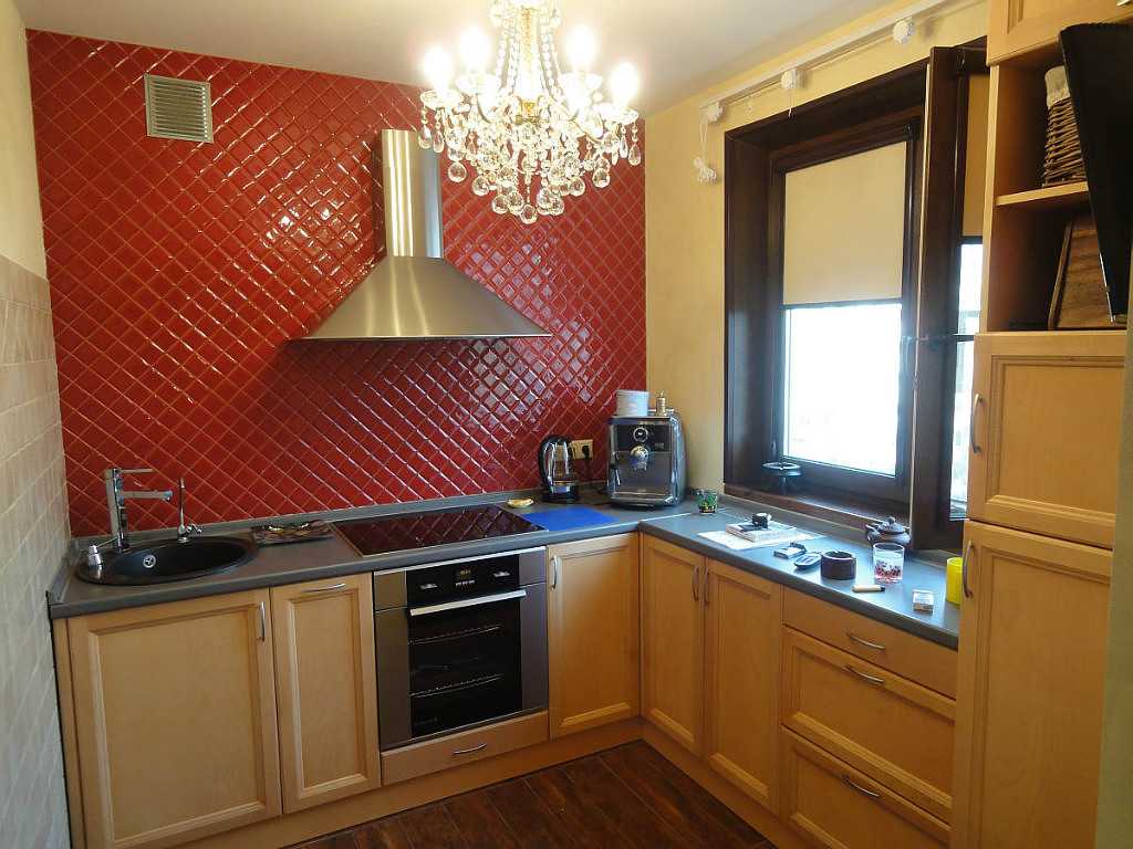 Кухонный фартук – зона между рабочей поверхностью – столешницей кухонного гарнитура – и подвесными шкафчиками. Традиционно этот участок отделывается с помощью керамической плитки. Если последняя имеет неброский однотонный оттенок, ее вполне можно украсить различными способами: