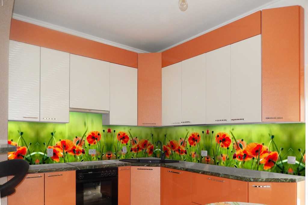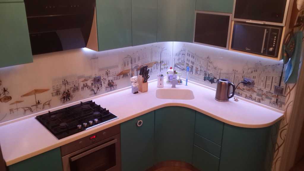 Немаловажную роль в оформлении кухни играет фартук. Чаще всего его подбирают под столешницу и по материалу, и по цвету.