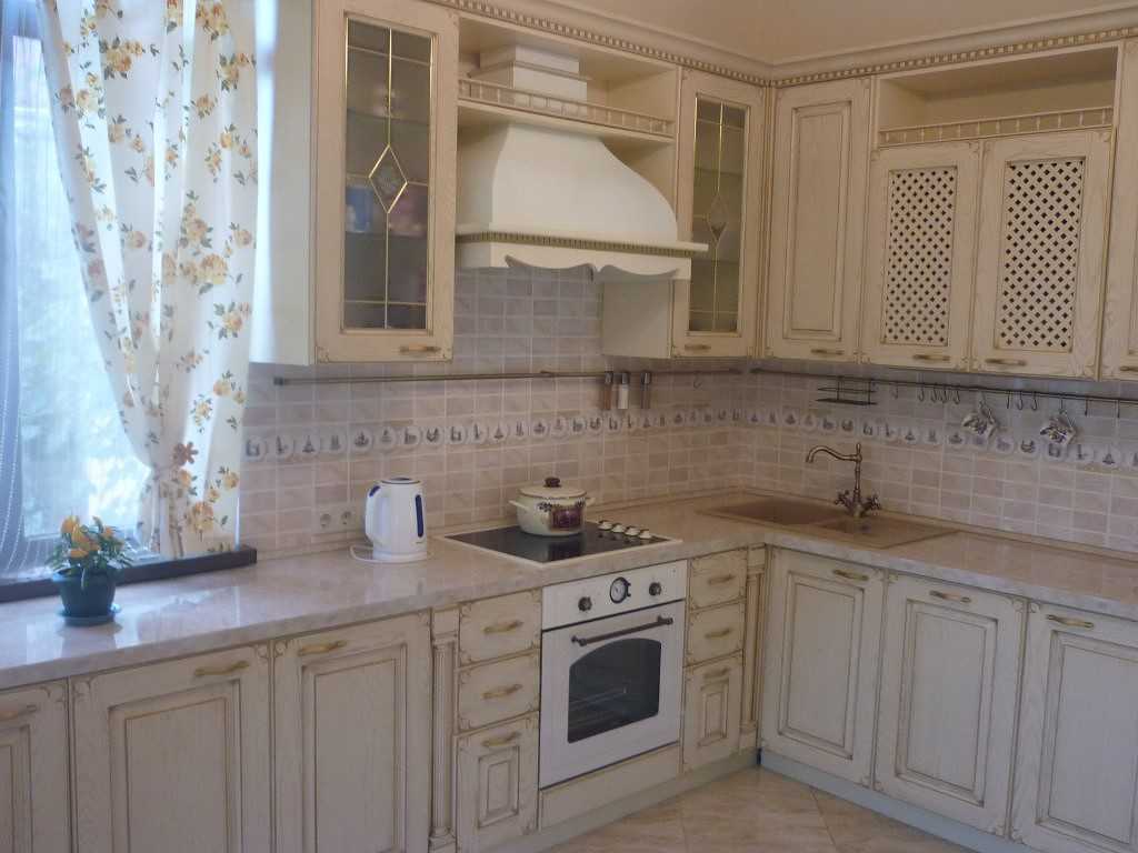 Кухня в тёплой пастельной гамме выглядит привлекательно в любом размере.