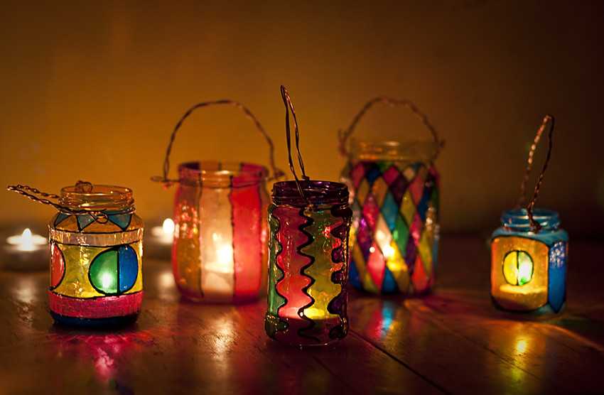 Ниже несколько вариантов украшения стеклянной банки с помощью красок.