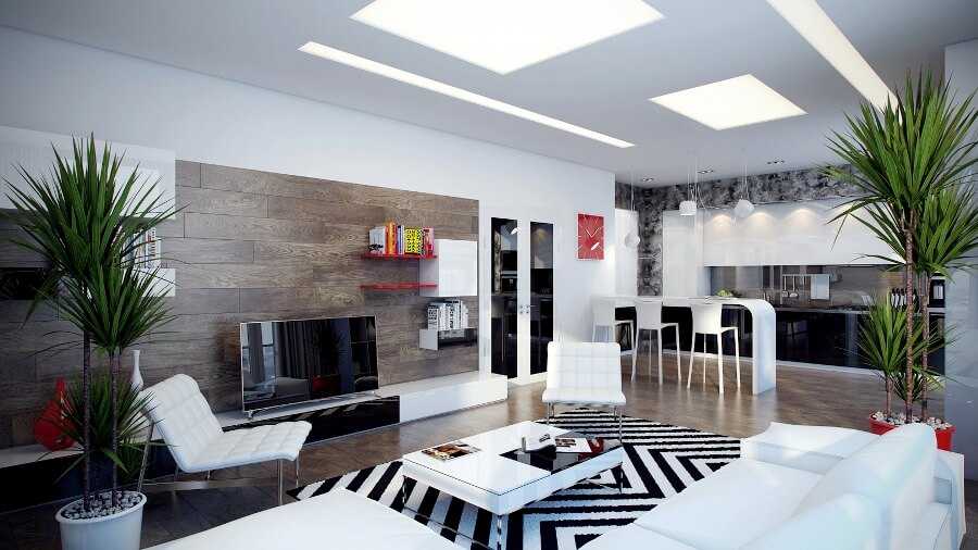 В интерьере гостиной можно смело использовать игру контрастных броских акцентов. Они привнесут в стиль эффектность и бодрость.