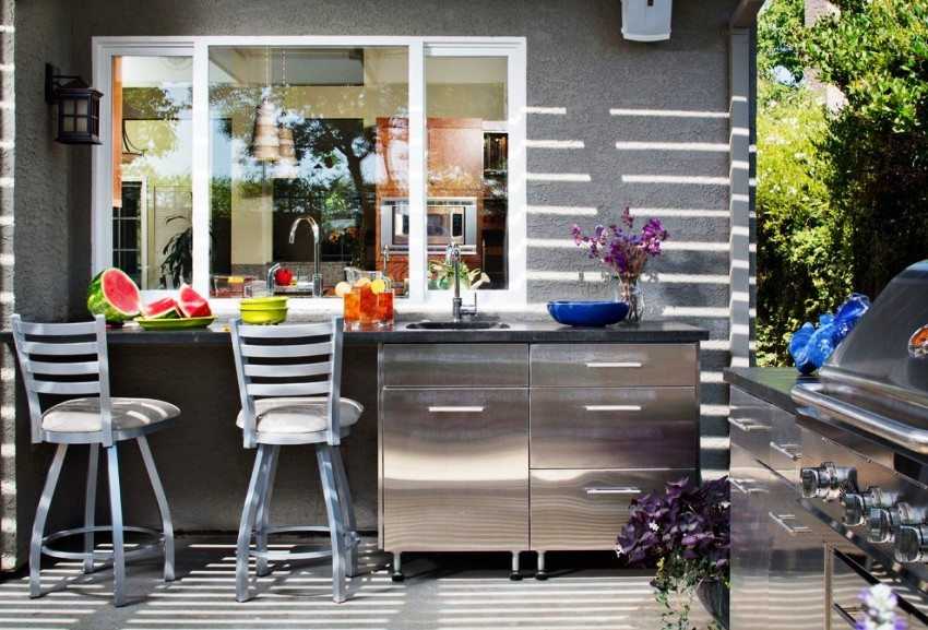 Летняя меблированная кухня, безусловно, будет хорошей для хозяев и их гостей в течение всего теплого времени года. Это идеальное место для отдыха, поэтому вам остается только выбрать максимально подходящий проект из представленной фото-галереи.