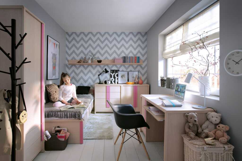 Настоящим спасением станет трансформирующаяся мебель, которая поможет стильно и функционально наполнить интерьер любой маленькой детской. Рассмотри модели кроватей, которые в сложенном состоянии прячутся в шкаф или превращаются в стол. Сейчас на мебельном рынке можно найти все что угодно или сделать под заказ.