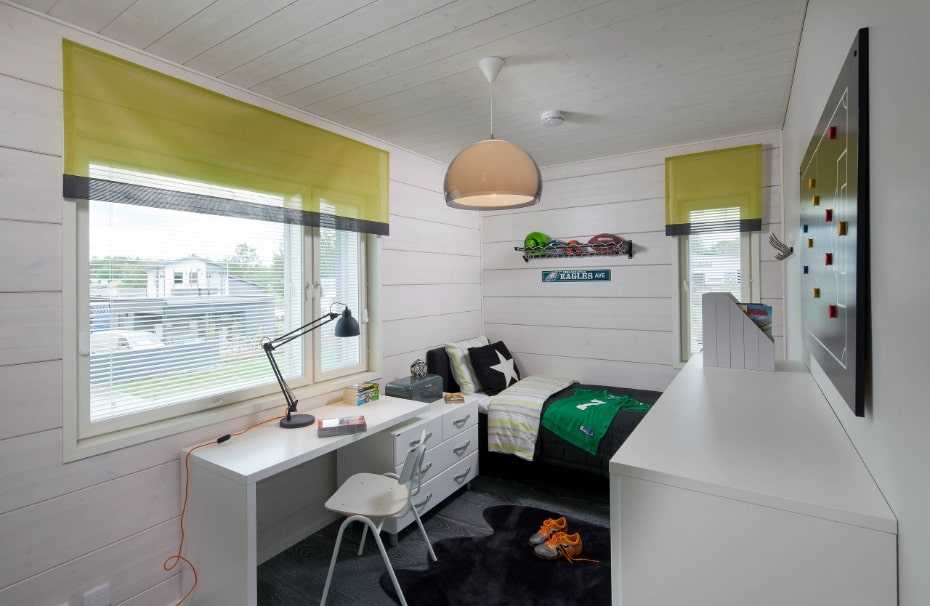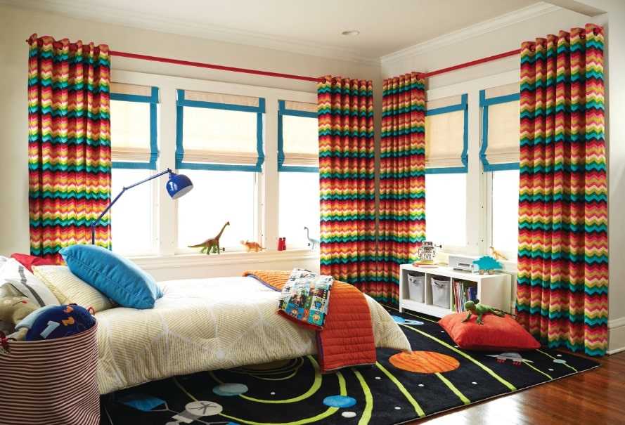 Кроме того, рекомендуем остановить выбор на экологичных материалах. Что касается цвета, то он может повторять общее оформление спальни или же быть контрастным. В основном шторы выбирают в меру плотные, чтобы они не пропускали свет. При этом тюль лучше выбирать светлую, не плотную и без дополнительных деталей. Ведь пропускание света влияет на зрение ребенка во время работы над домашним заданием.