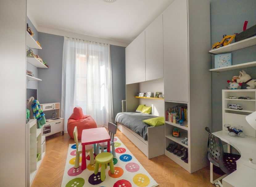 Если она совмещена с балконом/лоджией, ребенку повезло. У него есть больше пространства, свободы и возможностей. Планируя дизайн детской комнаты, учитывайте это. Полное снесение стены между дополнительным помещением и основной комнатой сложный процесс, требующий множества разрешений и согласований в специальных органах. В большинстве случаев он невозможен, так как это – несущая стена.
