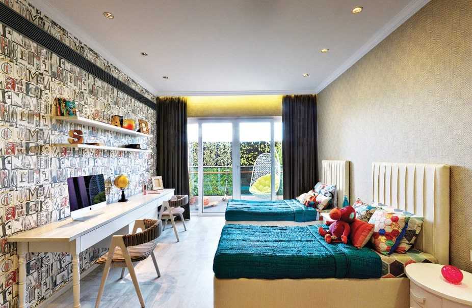 В комнате подростка можно пойти дальше, и сделать в детской, совмещенной с балконом, акцентной целую стену.