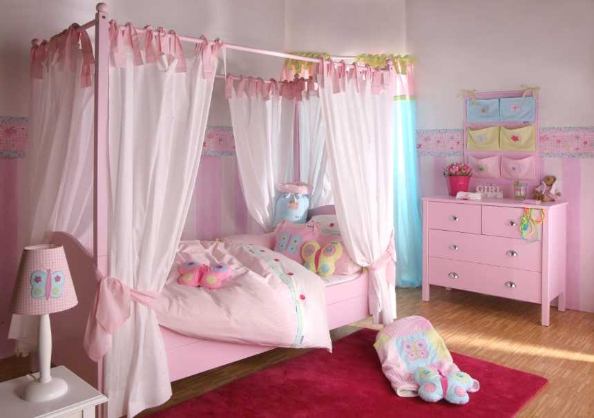 Оформите пространство в стиле кантри, модерн, классика, хай-тек – все зависит от возраста дочурки. Сделайте помещение светлым, просторным, уютным, теплым – без сквозняков. Используйте для отделки экологически чистые материалы.