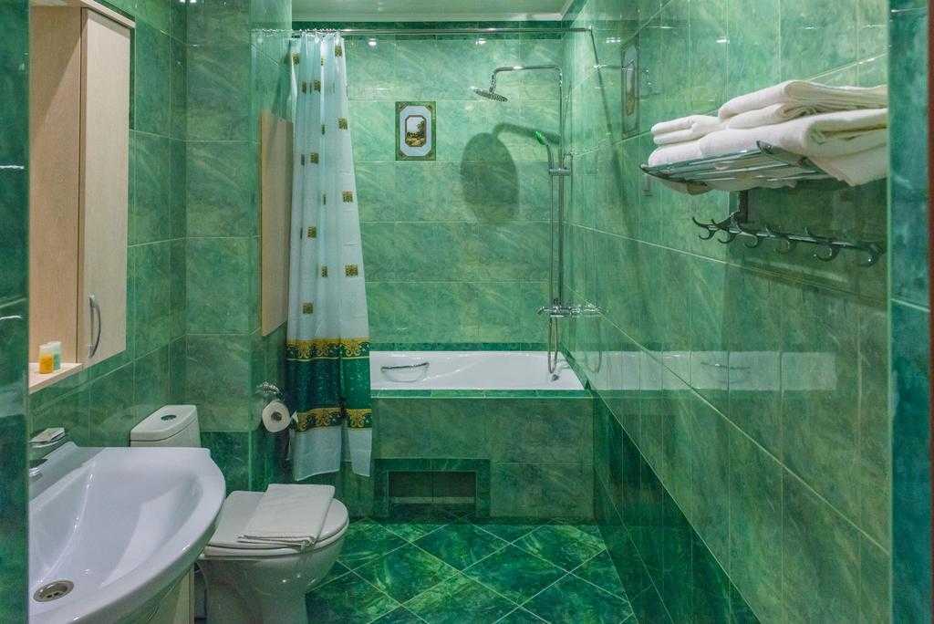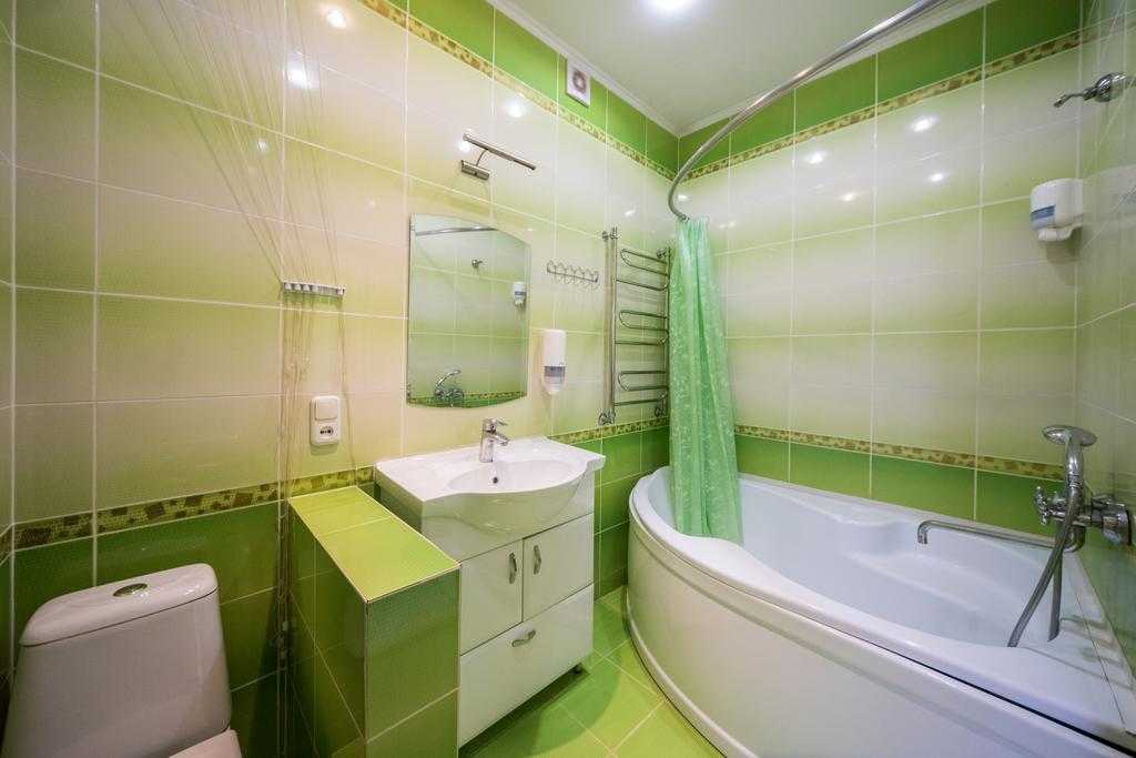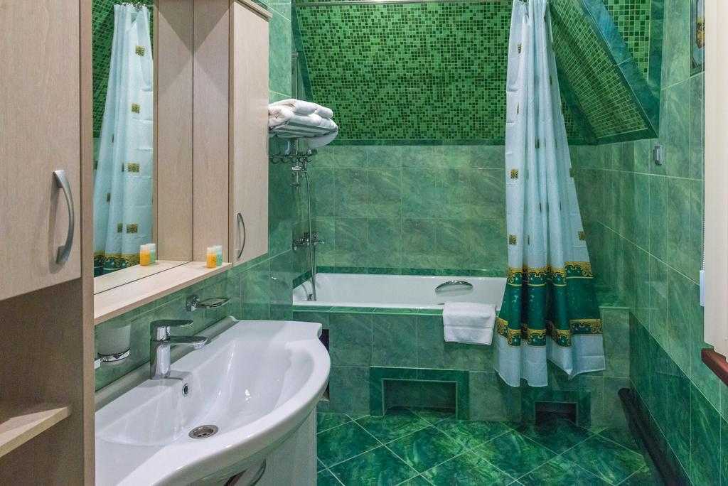 Поразит оригинальностью полностью одноцветная ванная комната, в которой и стены, и пол с потолком, и мебель с сантехникой – зеленые. Для создания гармоничности в таком помещении нужно: