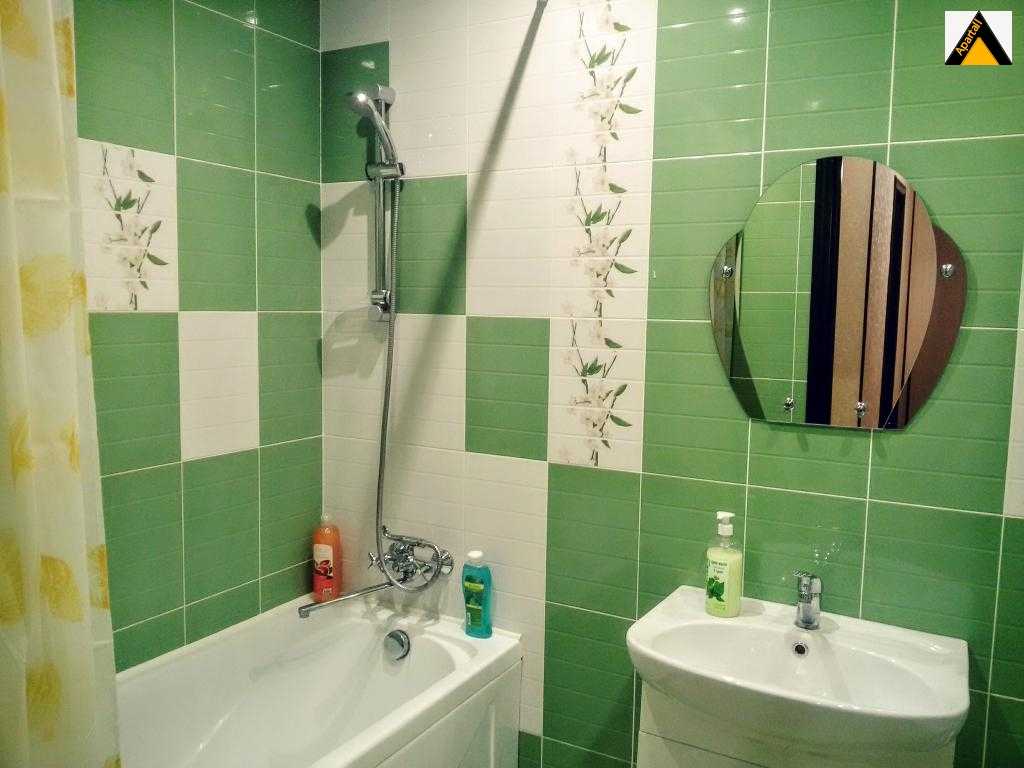 - Также можно удачно декорировать зеленым лишь одну стенку или место над ванной. Остальные стены выполнить в белом, коричневом, серебристом или песочном цветах. Такой вариант расставит акценты и визуально увеличит площадь комнаты.