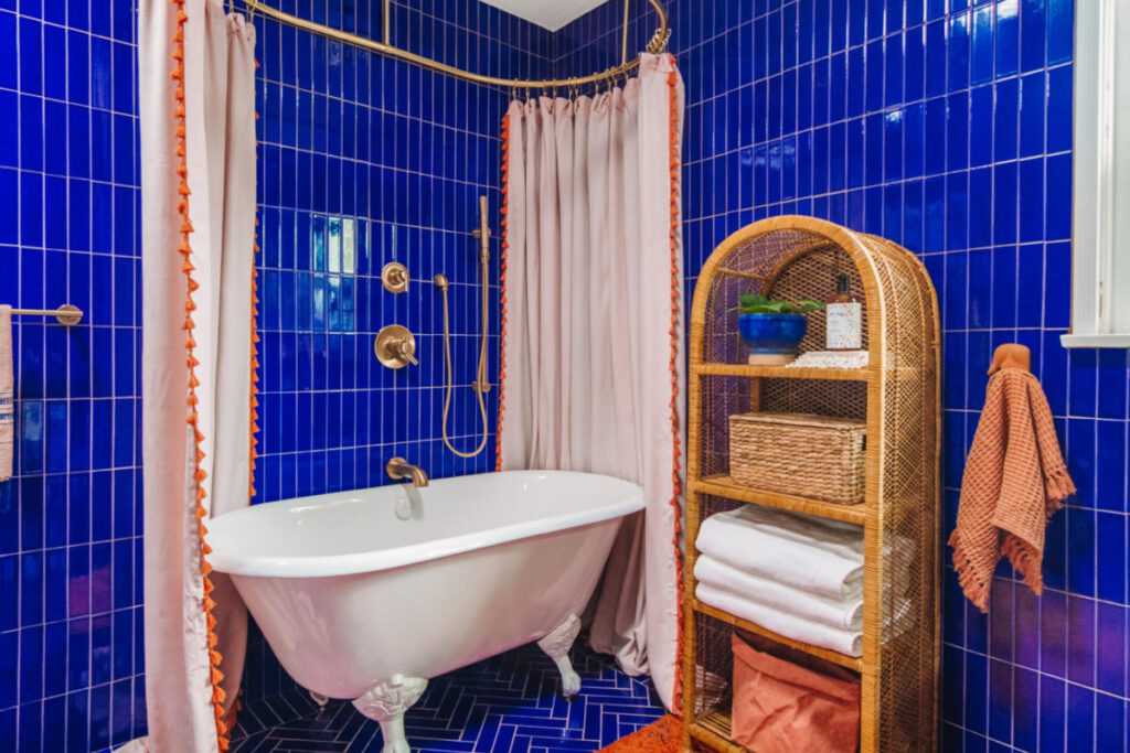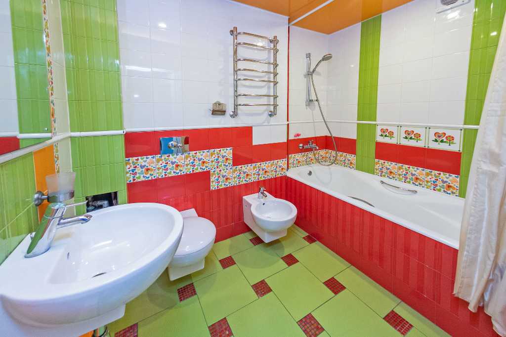 - установить мебель и сантехнику ярких насыщенных цветов;