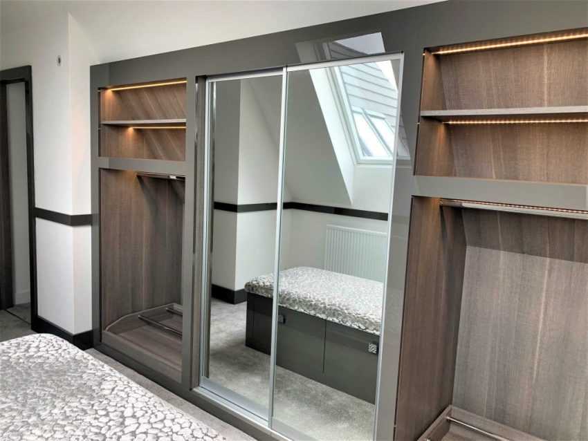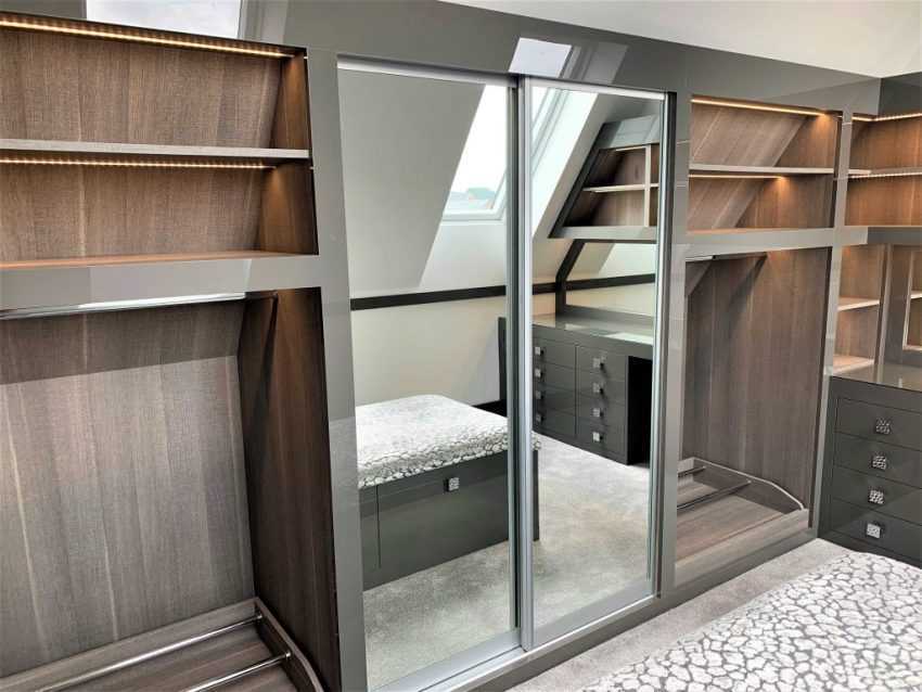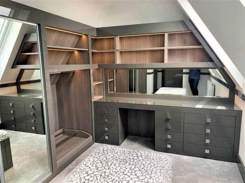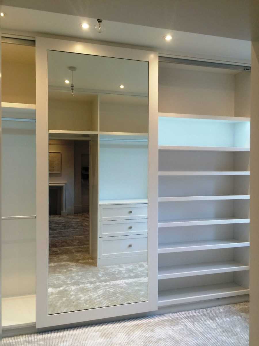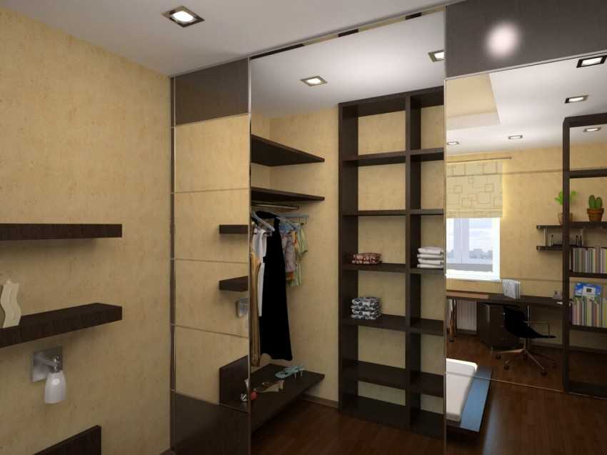 дизайн гардеробной комнаты с зеркалом