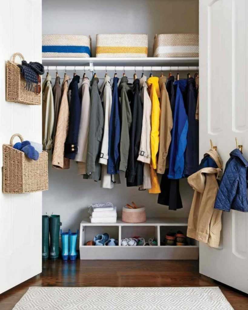 - одежду нужно всегда развешивать упорядоченно, чтобы облик помещения смотрелся эстетично.