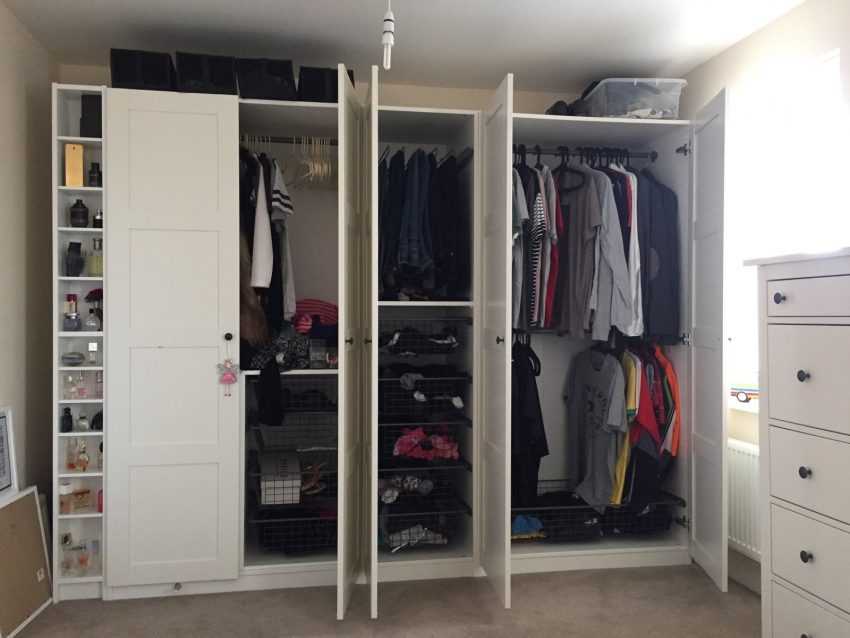 - если размеры гардероба позволяют, можно подготовить пространство для размещения одежды каждого из домочадцев – это очень удобно.