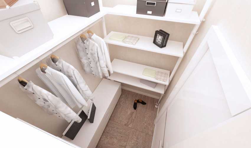 проект гардеробной комнаты с закрытыми полками