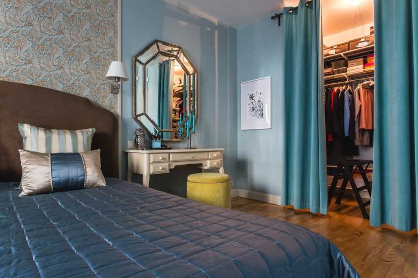 На фото – пример гардеробной в комнате 18 кв. м: