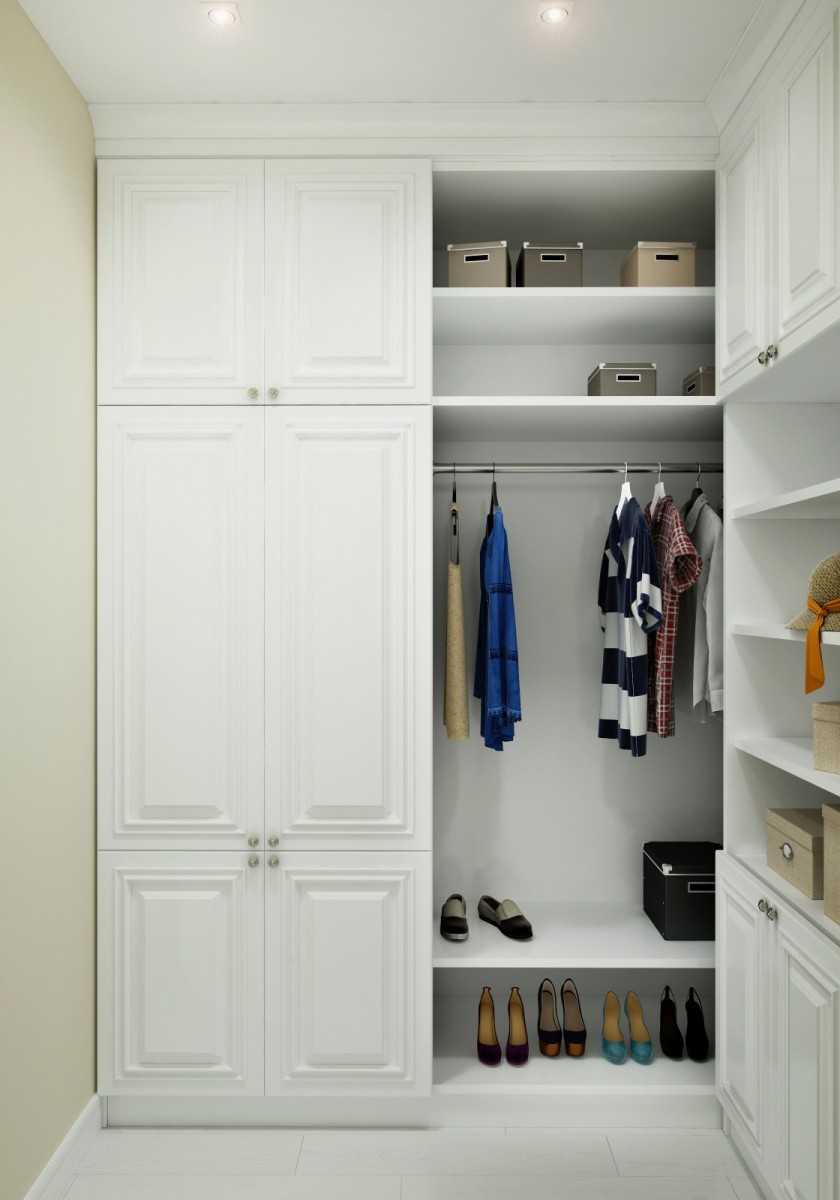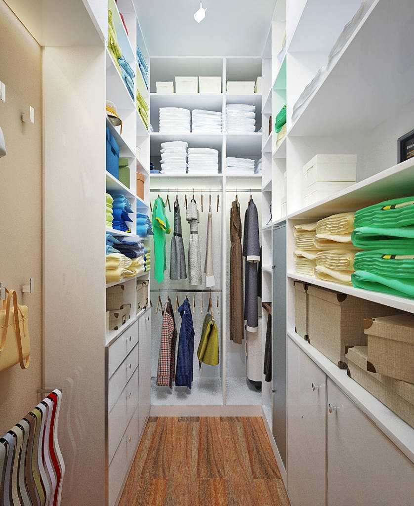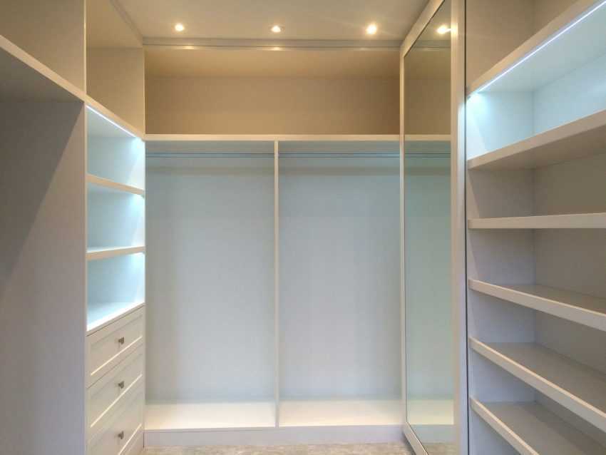 - необходимость наличия достаточного места для ее обустройства (устройство закрытой гардеробной в узкой кладовке будет проблематичным);