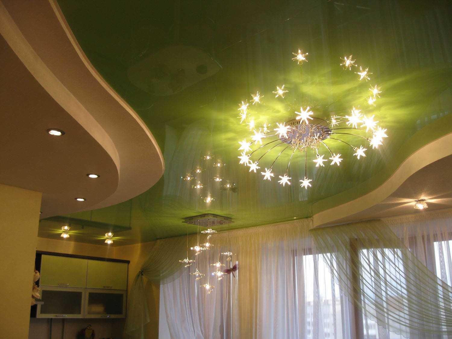 Грамотное сочетание цветов сформирует привлекательный облик потолочной конструкции. Яркие комбинации будут смотреться экстравагантно и броско, а более пастельные — спокойно и лаконично.