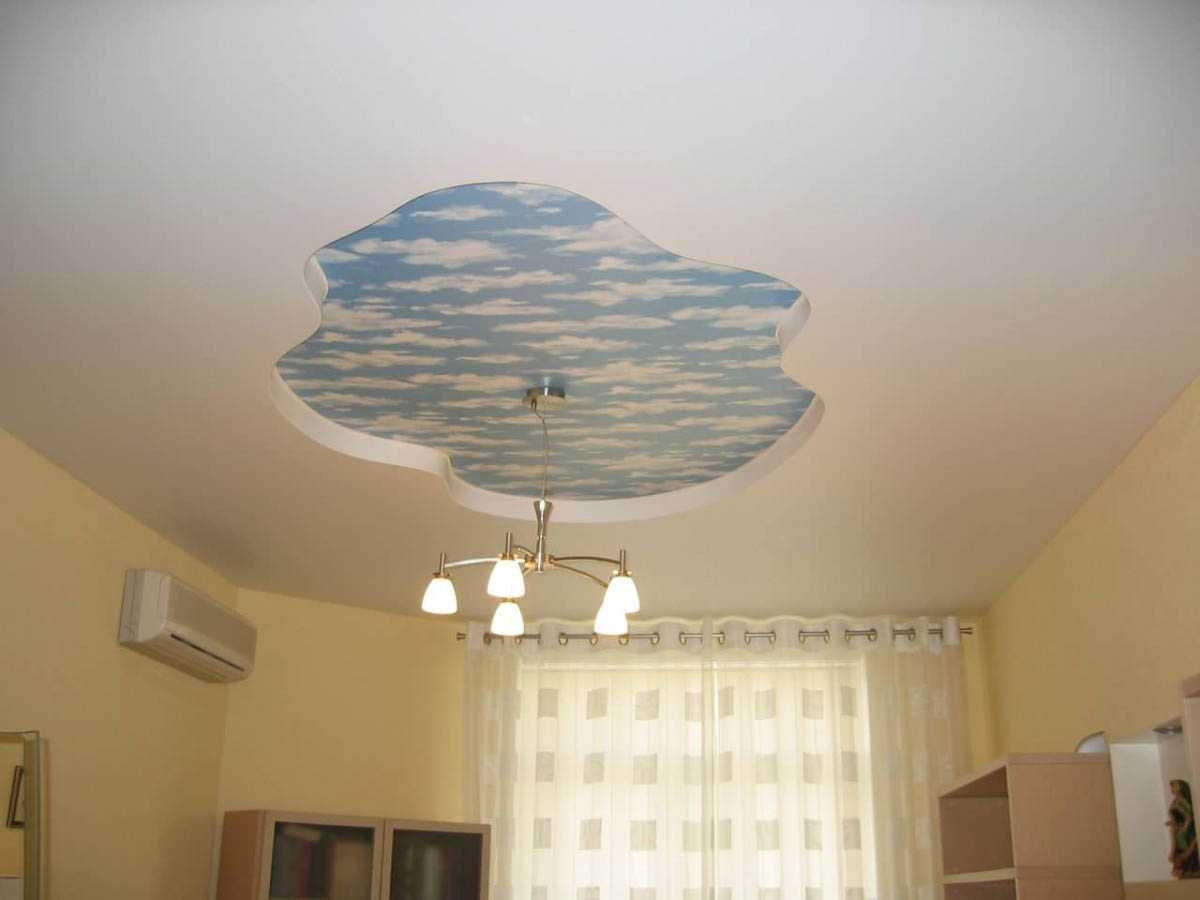 Их главное преимущество – простота и надежность. Это оптимальный вариант для маленьких комнат. Исключение составляют разве что ванная и кухня: повышенная влажность в этих помещениях разрушительно влияет на материал. В остальных случаях достаточно один раз отделать потолок тонкими гипсокартонными листами (ГКЛ), чтобы получить идеально ровную поверхность на десятки лет. В дальнейшем его можно декорировать по своему усмотрению: окрашивать водоэмульсионной краской либо алкидной эмалью, покрывать декоративной шпатлевкой, делать ручную роспись, оклеивать обоями. Если высота стен меньше 3 метров, желательно ориентироваться на светлые оттенки, поскольку насыщенные и темные цвета будут зрительно уменьшать пространство.