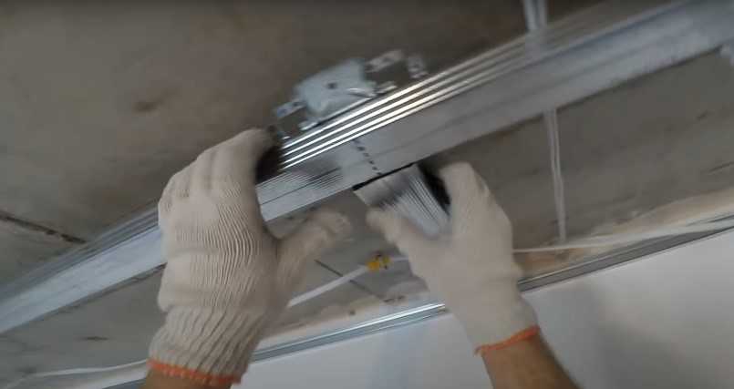 - При монтаже подсистемы из направляющих следует придерживаться главному правилу – каждое угловое сопряжение должно иметь опору в виде подвеса, и ни один угол не должен образовывать консоль, так как это приведёт к прогибам при дальнейшей эксплуатации.