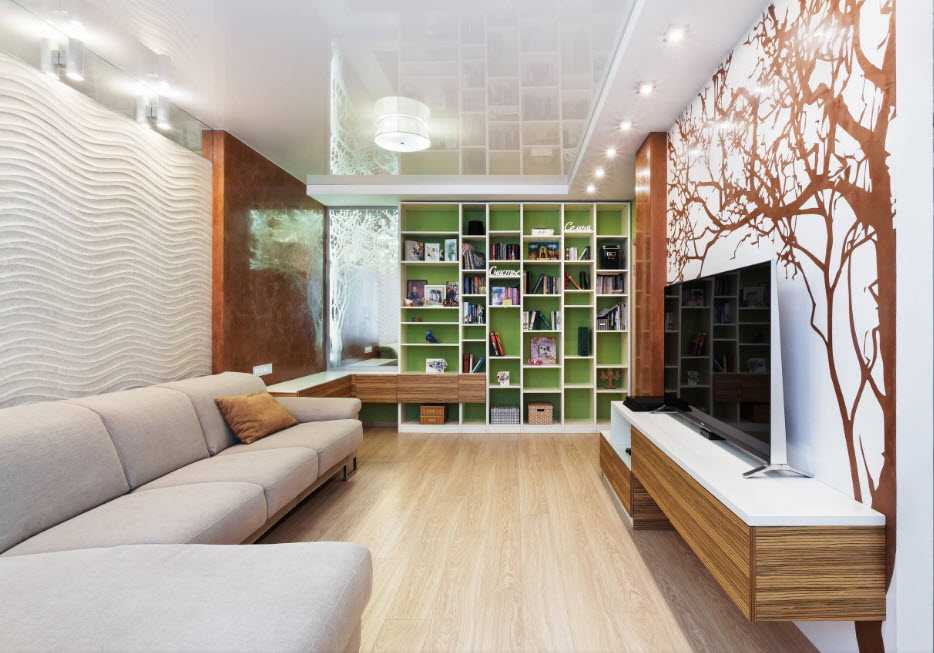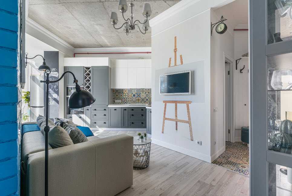 Для того чтобы интерьер не казался скучным важно использовать некоторые хитрости, например, принты, абстракции и геометрические рисунки. При отделке пола, потолка и стен важно выбирать материалы, способные корректировать форму помещения, делая его более просторным