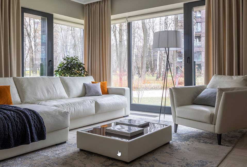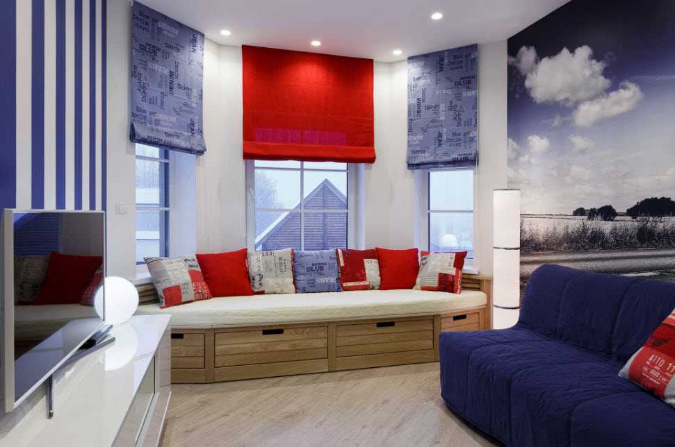 - Если в помещении предусмотрены большие оконные ниши, то нужно использовать привлекательность спокойных натуральных оттенков, шикарную мебель и материалы высокого качества. Лучше остановить свой выбор на ручной работе элементов для выполнения декора;